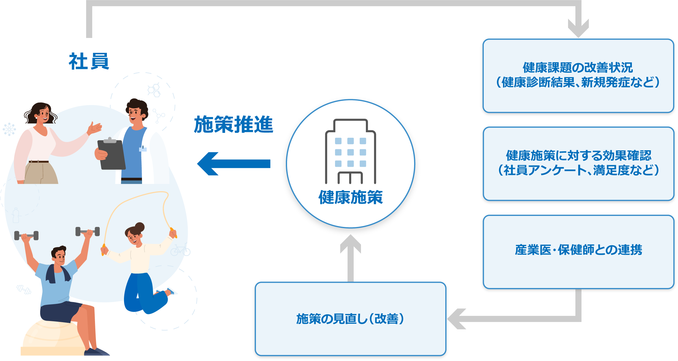 PDCAサイクルに基づいた健康経営を推進しています。